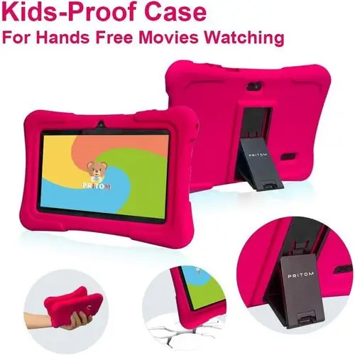 【Durable Tablet with Shockproof Case】Food-grade silicone case and holder, hands-free for children. The case will protect the tablet from damage while keeping it portable. And the stand behind the tablet allows kids to watch and video chat hands-free. This is an excellent gift for children to aid in the development of skills and imagination through joyful play.